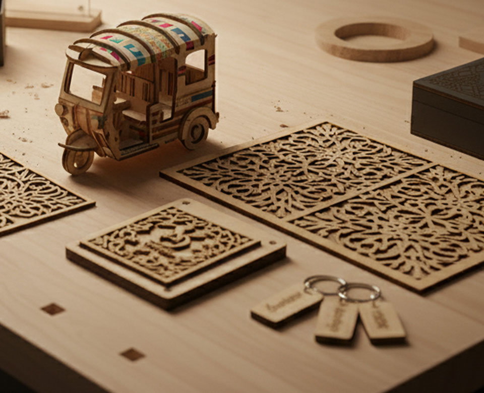 Transformamos ideas en piezas únicas a través de tecnología de precisión. Nuestros servicios de corte y grabado láser se adaptan a múltiples materiales como madera, acrílico, vidrio, cuero, metal, MDF, bambú y más.