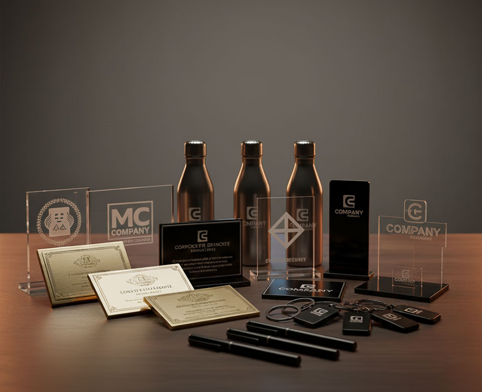 Placas conmemorativas, artículos promocionales y branding personalizado para empresas.